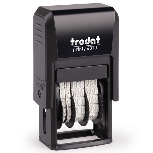 Datownik samotuszujący Trodat Printy 4810. Wysokość czcionki 4 mm, wersja daty polska, tj. w kolejności dzień-miesiąc-rok, pisany skrótem literowym, przykład 01-STY-2024. W eleganckiej obudowie wyprodukowanej z odzyskanego plastiku oraz ze zmniejszoną emisją CO2. Polecany szczególnie do stemplowania korespondencji firmowej, potwierdzenia odbioru gotówki, dostawy towaru itp.